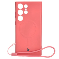 Etui silikonowe z pierścieniem magnetycznym Bizon Case Silicone Magnetic do Galaxy S23 Ultra, jasnoróżowe