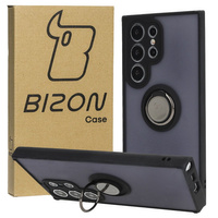 Etui z uchwytem na palec Bizon Case Hybrid Ring do Galaxy S24 Ultra, przydymione z czarną ramką