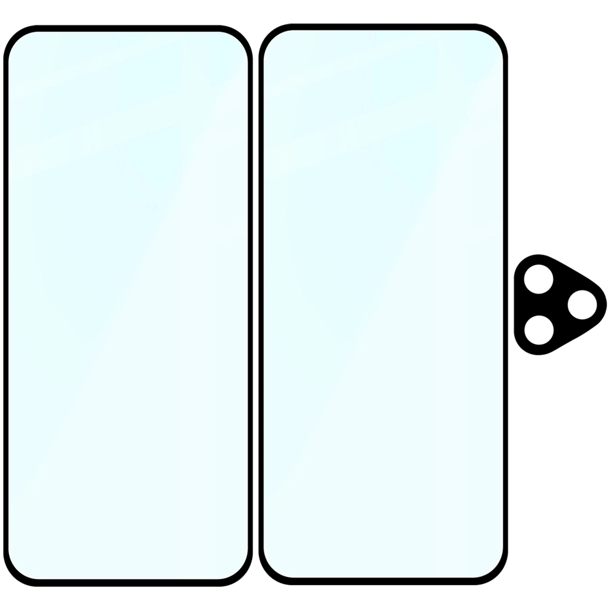 Bizon Glass Edge 2 Pack, oprócz 2 sztuk szkła hartowanego na wyświetlacz i 1 sztuki nakładki na aparat, zawiera: