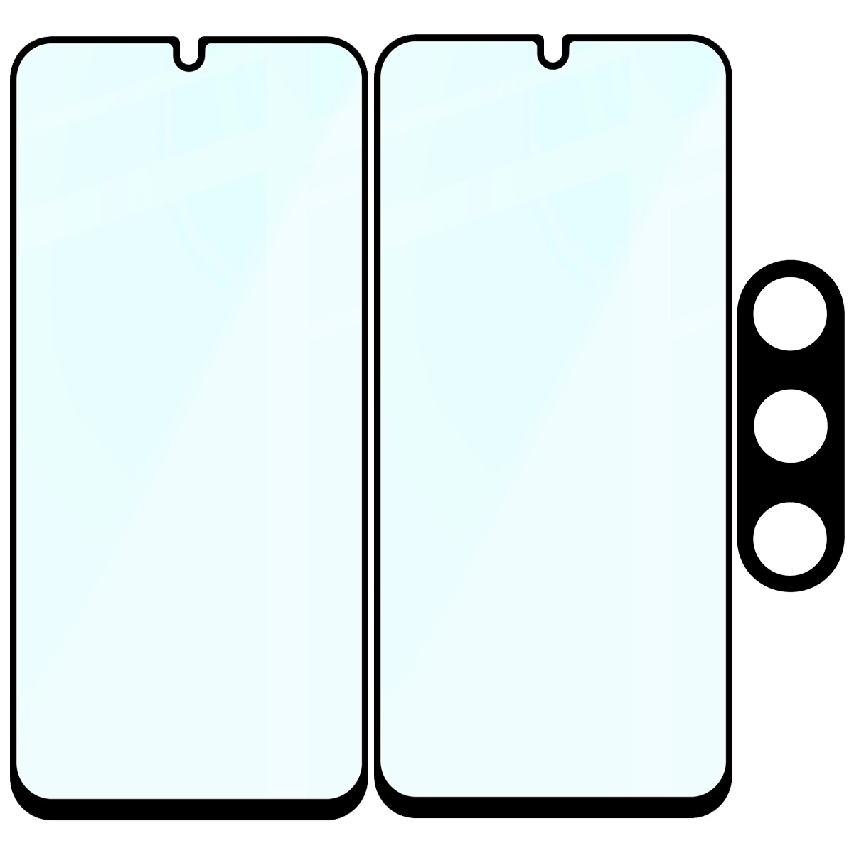 Bizon Glass Edge 2 Pack, oprócz 2 sztuk szkła hartowanego na wyświetlacz i 1 sztuki nakładki na aparat, zawiera: