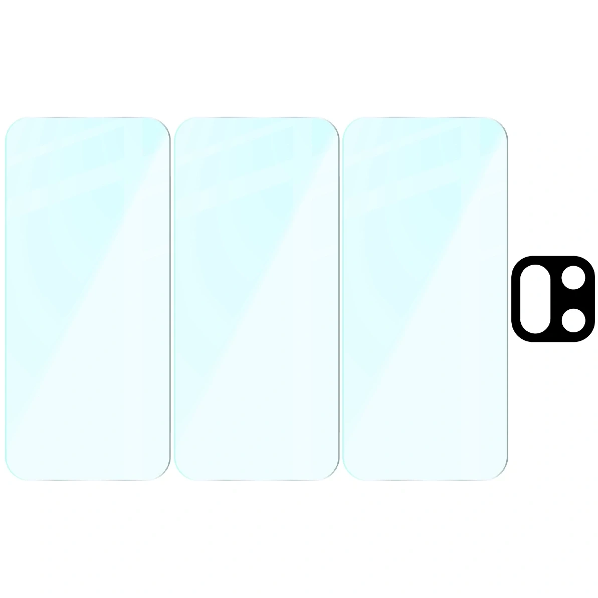 Bizon Glass Clear Pack, oprócz 3 sztuk szkła hartowanego na wyświetlacz i 1 sztuki nakładki na aparat, zawiera: