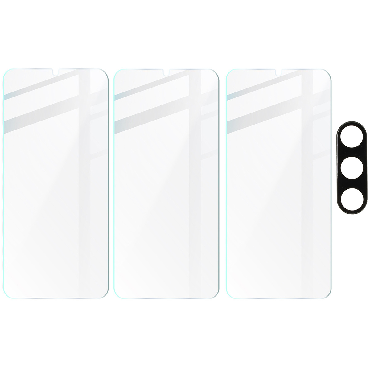 Bizon Glass Clear 2 Pack, oprócz 3 sztuk szkła hartowanego na wyświetlacz i 1 sztuki nakładki na aparat, zawiera: