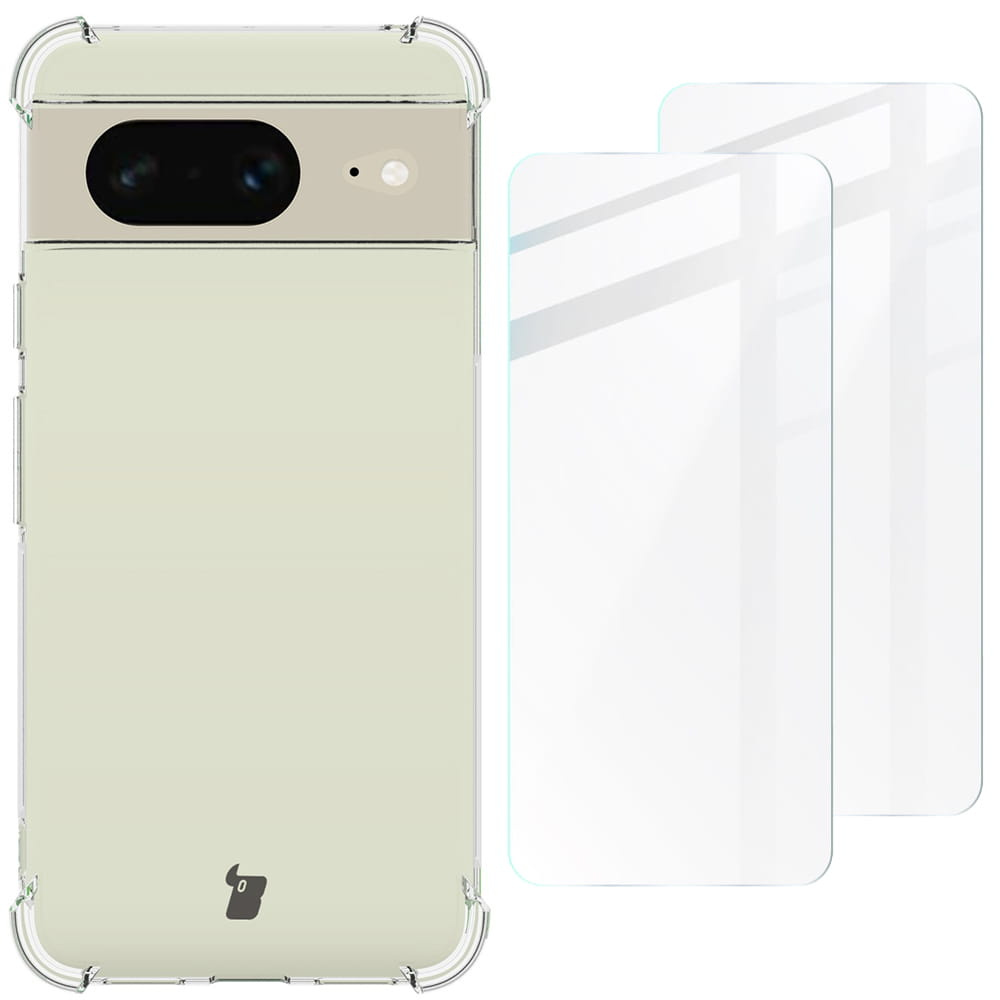 Etui + 2x szkło Bizon Case Clear Pack do Google Pixel 8, przezroczyste