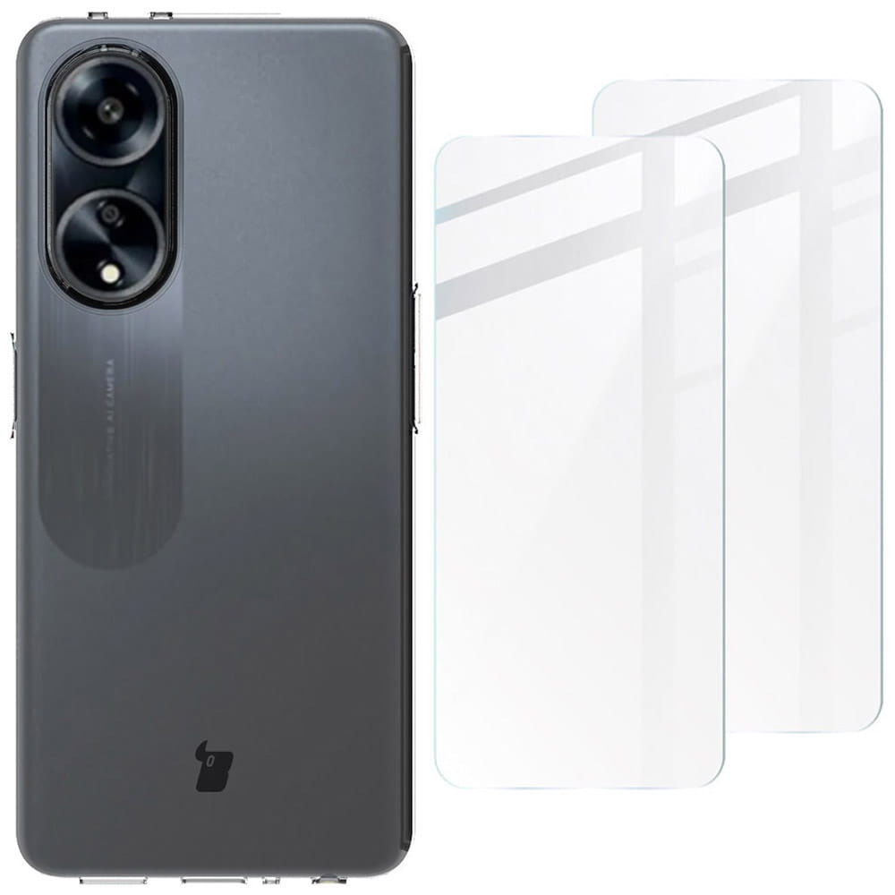 - Elastyczne etui + 2 szt. szkła Bizon Case Clear Pack do Oppo A98 5G, przezroczyste