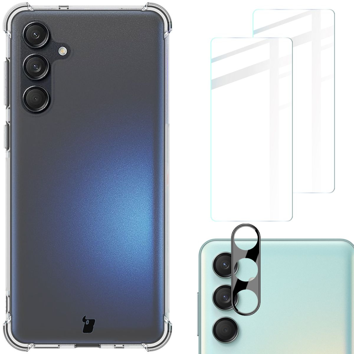 - Elastyczne etui + 2 szt. szkła + szkło na aparat Bizon Case Clear Pack do Samsung Galaxy M55 5G, przezroczyste