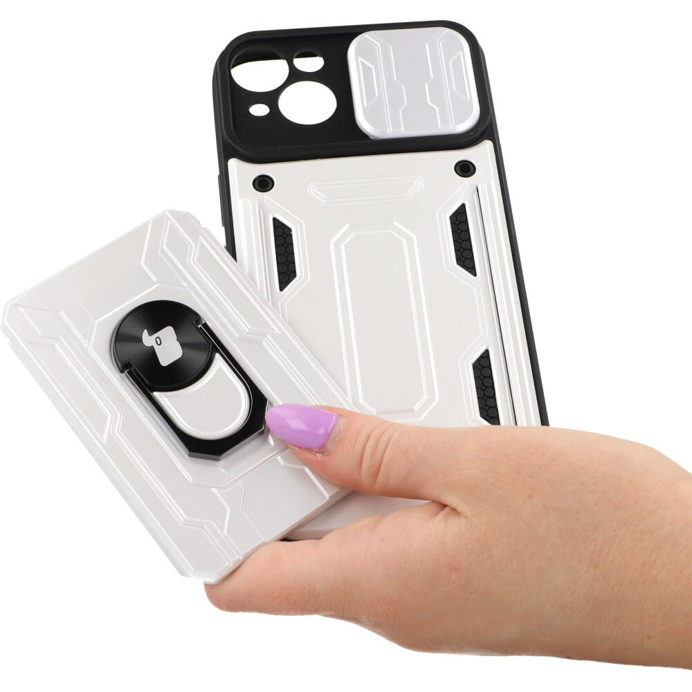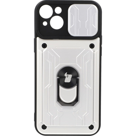 Etui Bizon Case Camshield Card Slot Ring do iPhone 14 Plus, białe