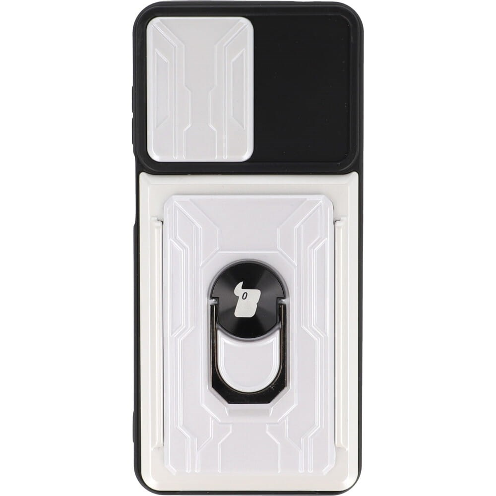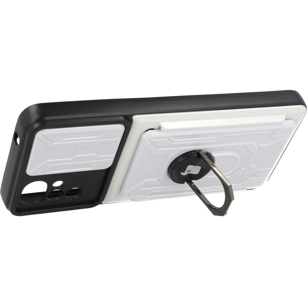 Etui Bizon Case Camshield Card Slot Ring do Moto G22, białe