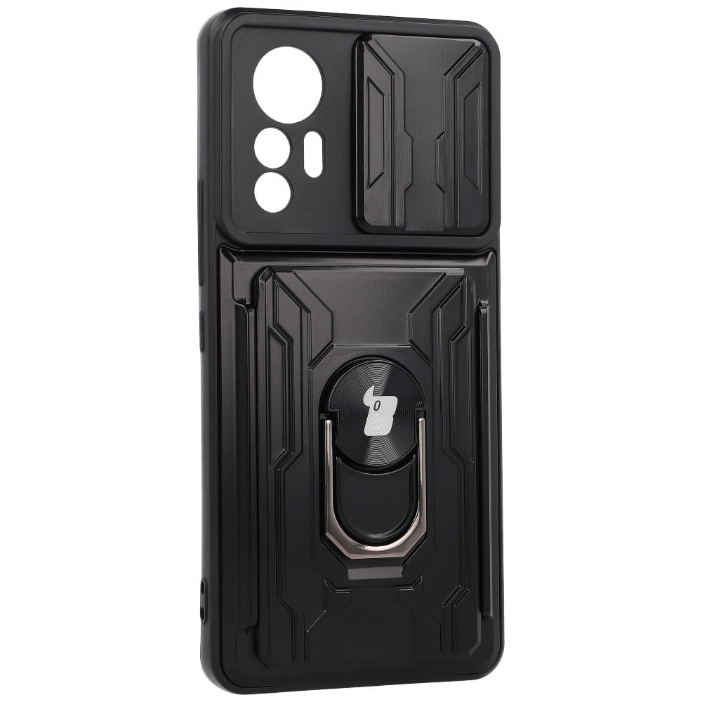 Etui Bizon Case Camshield Card Slot Ring do Xiaomi 12 Lite, czarne