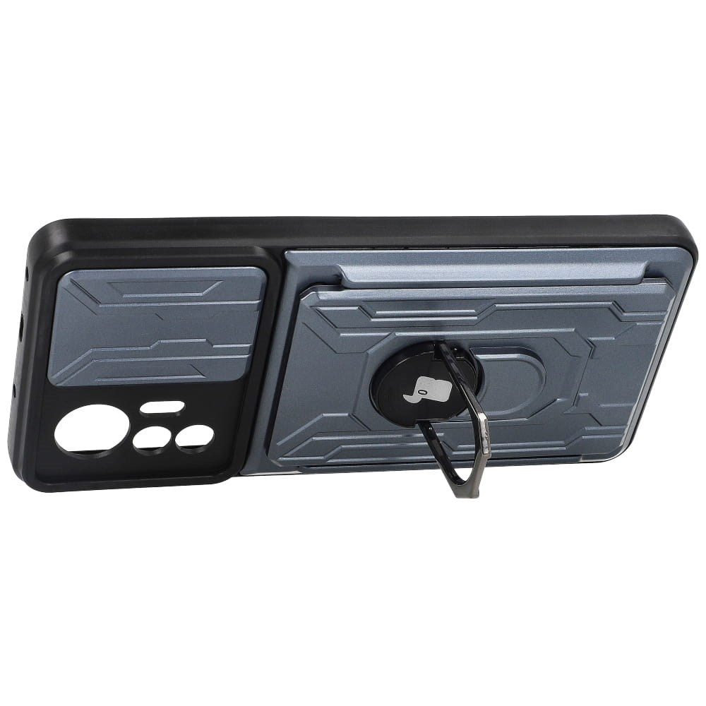 Etui Bizon Case Camshield Card Slot Ring do Xiaomi 12 Lite, szare