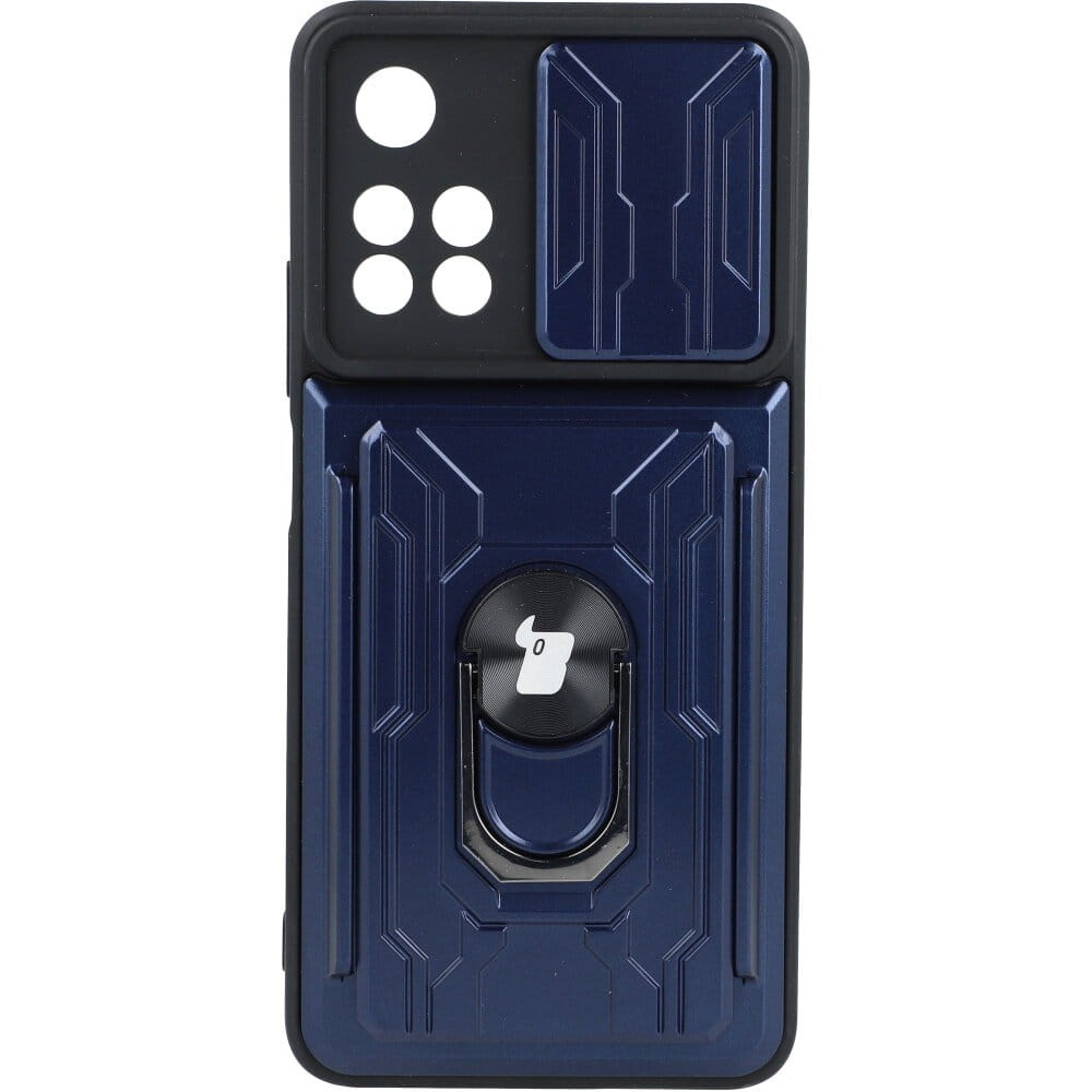 Etui Bizon Case Camshield Card Slot Ring do Xiaomi Redmi Note 11 Pro+ 5G, granatowe