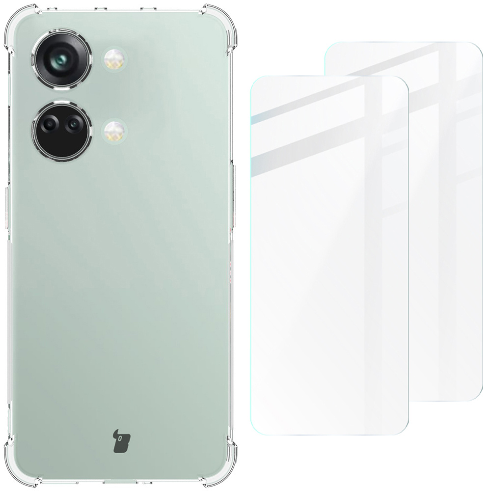 - Elastyczne etui + 2 szt. szkła Bizon Case Clear Pack do OnePlus Nord 3, przezroczyste