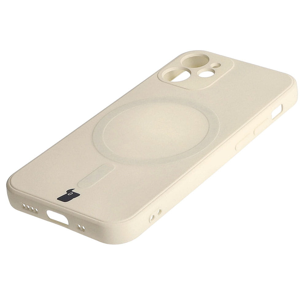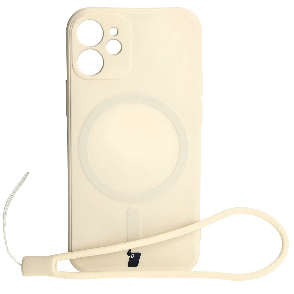 - Silikonowe etui z pierścieniem magnetycznym Bizon Silicone Magnetic Sq do Apple iPhone 12 Mini, beżowe