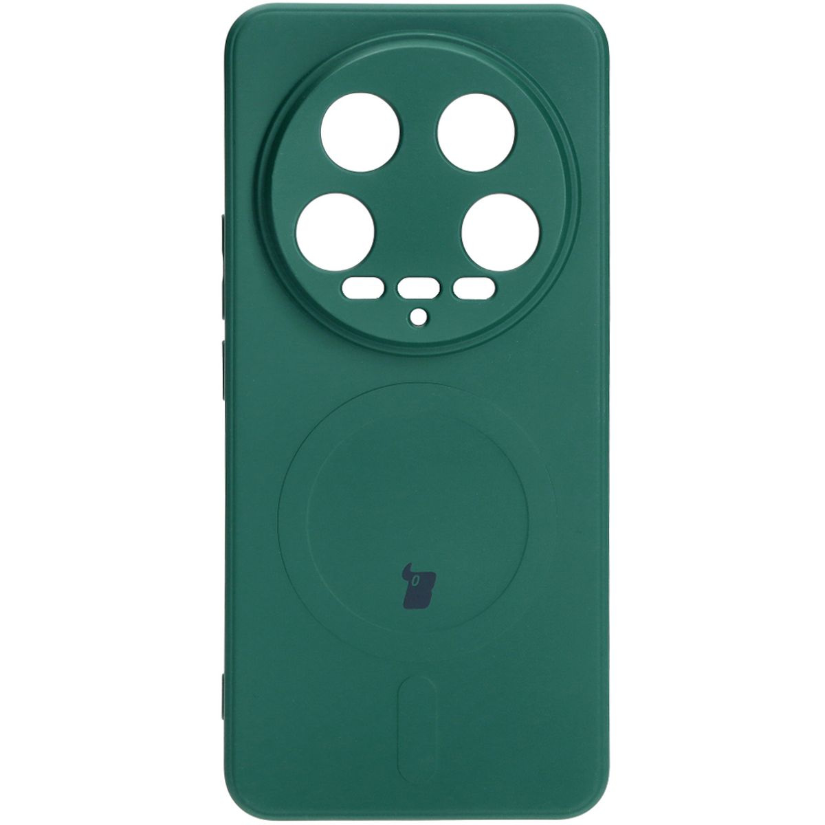- Silikonowe etui z pierścieniem magnetycznym Bizon Silicone Magnetic Sq do Xiaomi 14 Ultra, ciemnozielone