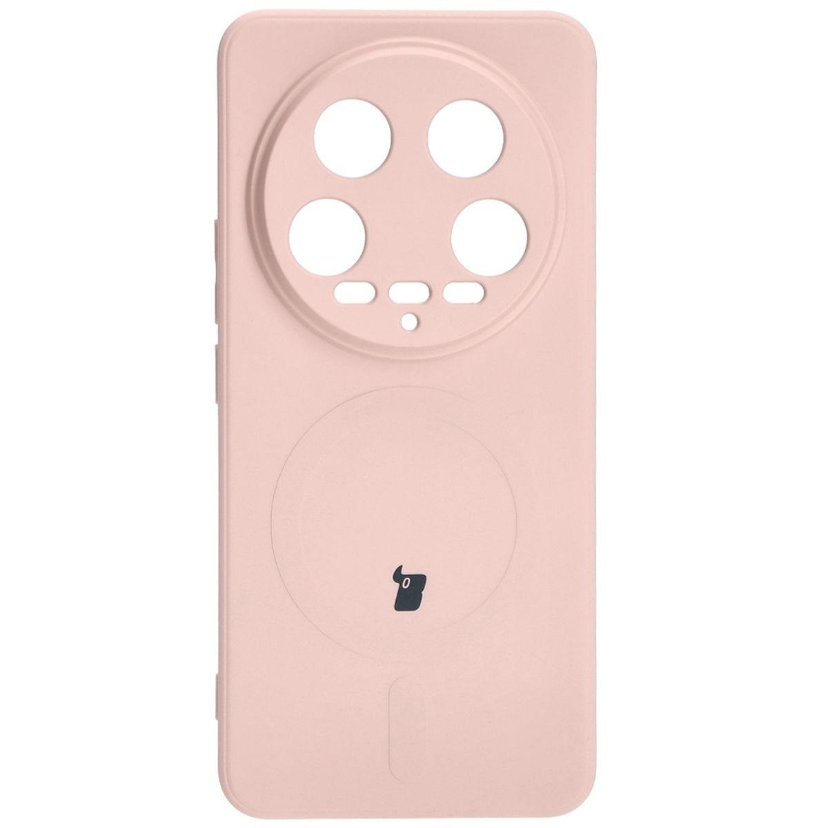- Silikonowe etui z pierścieniem magnetycznym Bizon Silicone Magnetic Sq do Xiaomi 14 Ultra, jasnoróżowe