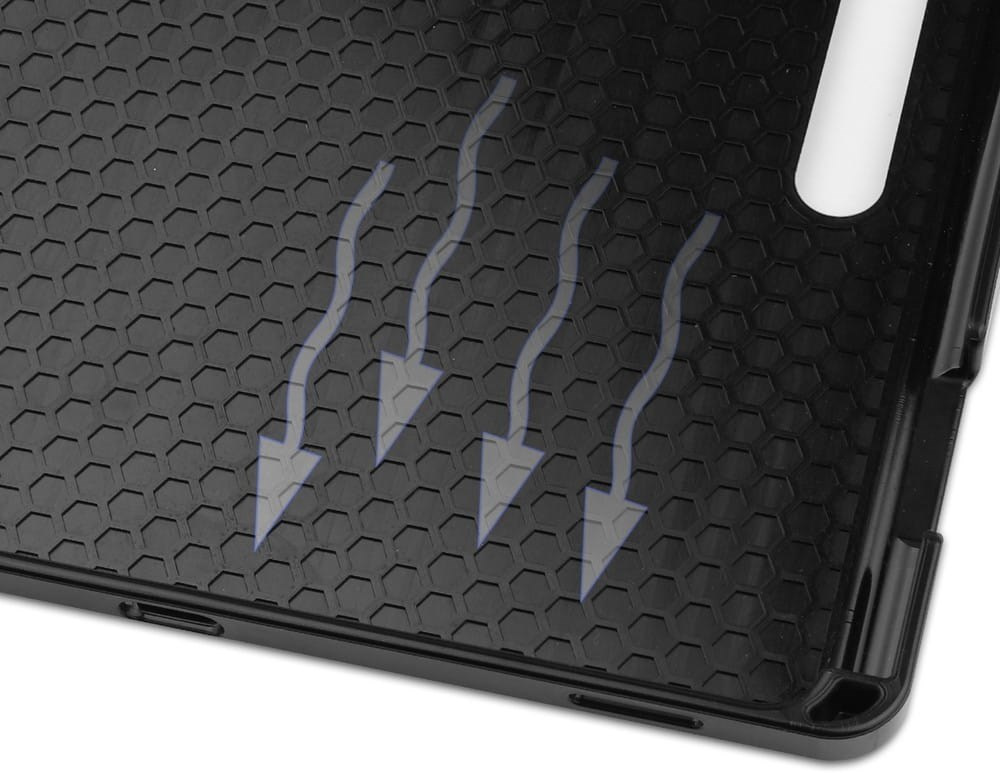 Bizon Case Tab Lizard posiada wzmocnione narożniki, które zapewnią urządzeniu dodatkową ochronę w razie upadku. Wnętrze pokrowca posiada strukturalną teksturę imitującą plastry miodu, nie musisz obawiać się o to, że tablet zbyt mocno nagrzeje się w etui, co mogłoby wywołać szkody. Etui z serii Tab Lizard dzięki odpowiedniej budowie uwalnia ciepło.