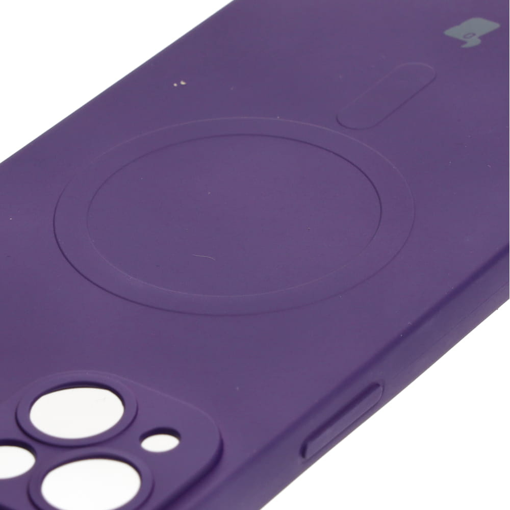 Etui silikonowe z pierścieniem magnetycznym Bizon Case Silicone Magnetic do iPhone 14 Plus, śliwkowe
