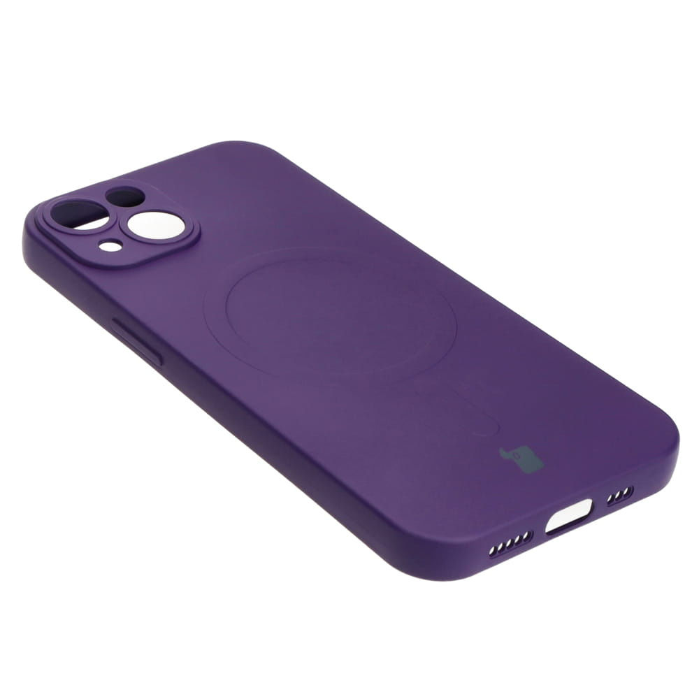 Etui silikonowe z pierścieniem magnetycznym Bizon Case Silicone Magnetic do iPhone 14, śliwkowe