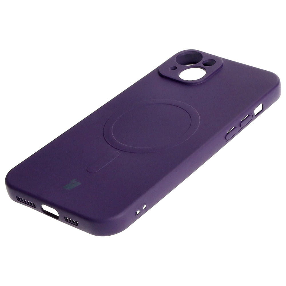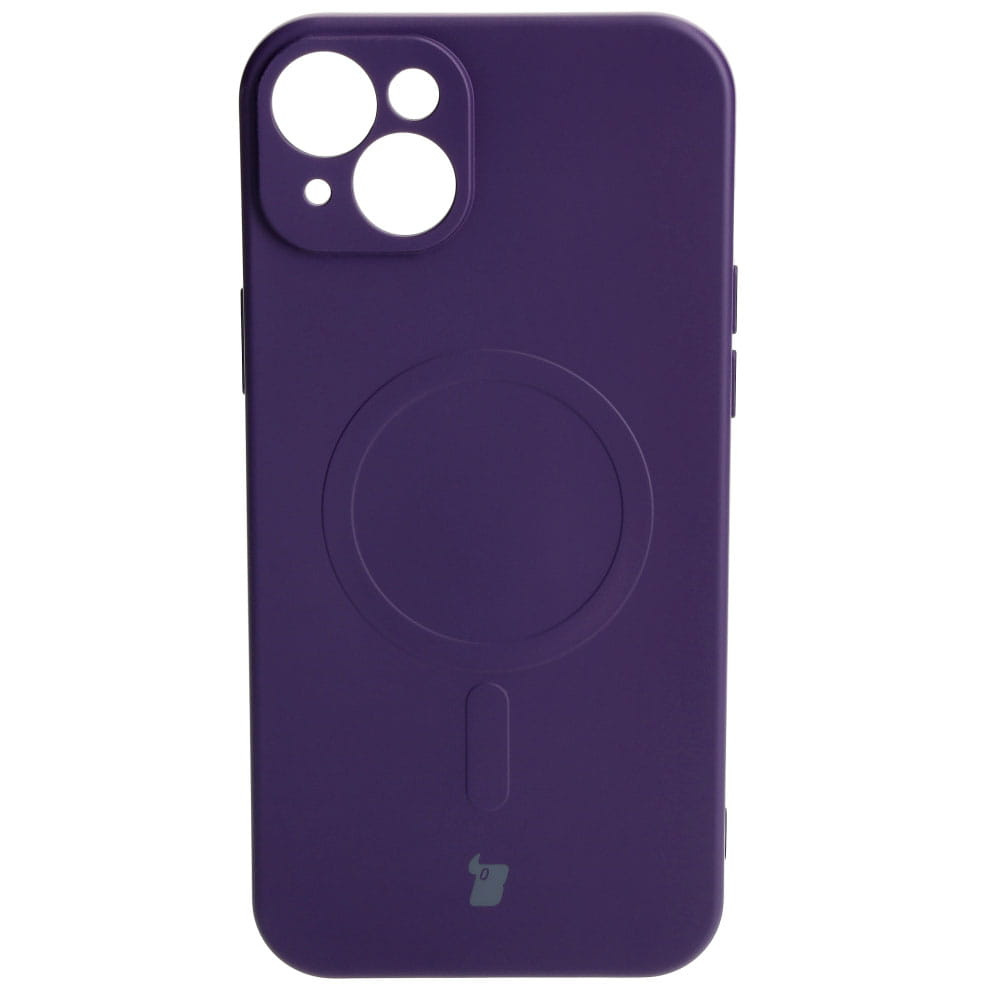 Etui silikonowe z pierścieniem magnetycznym Bizon Case Silicone Magnetic do iPhone 15 Plus, śliwkowe