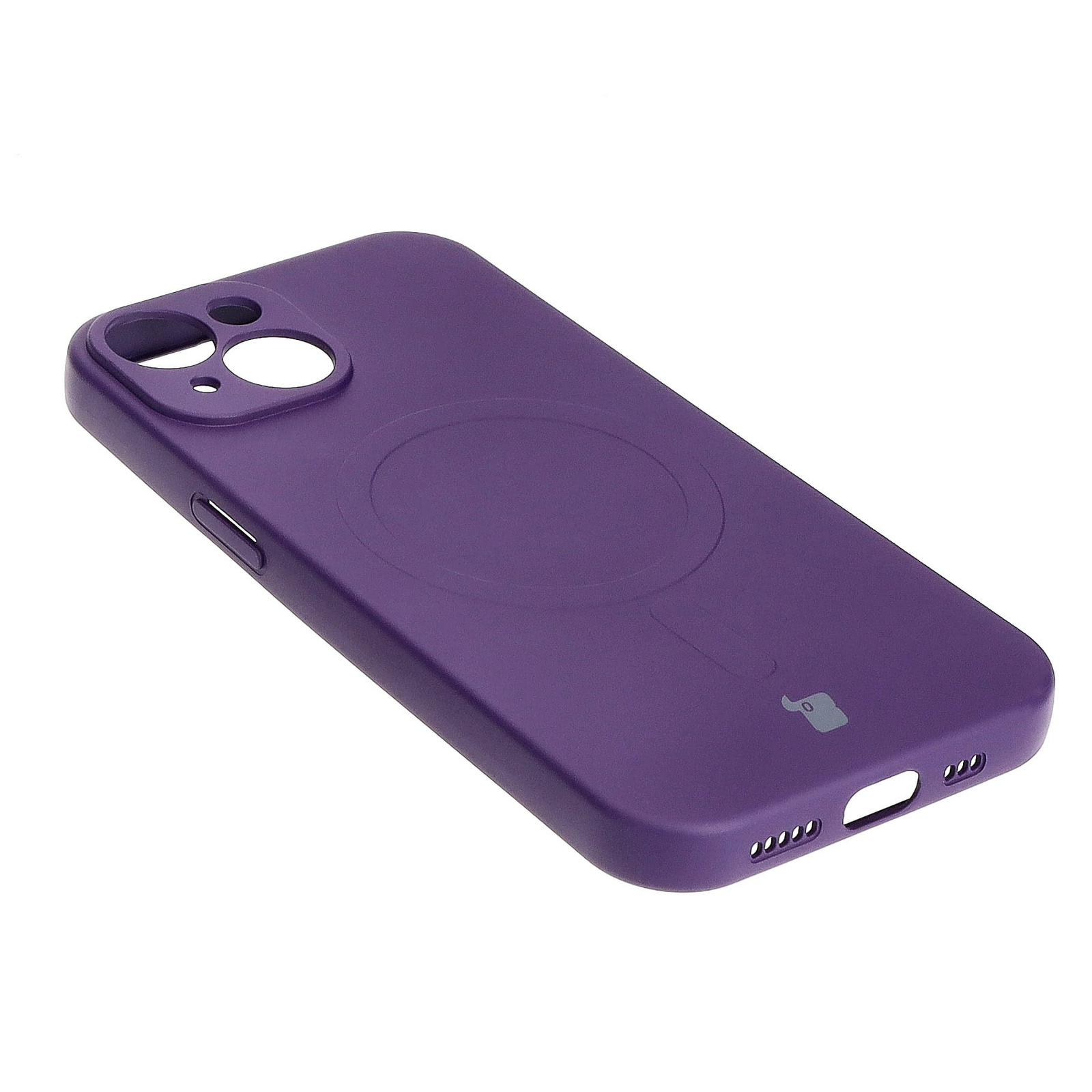 Etui silikonowe z pierścieniem magnetycznym Bizon Case Silicone Magnetic do iPhone 15, śliwkowe