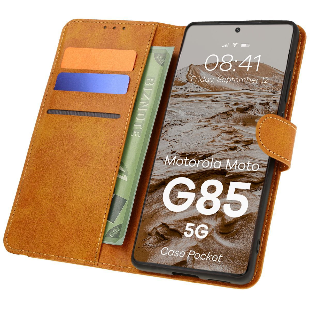 - Etui z klapką, zamykane, magnetyczne, obudowa 360, etui portfelowe, skórzane - nieważne, jak na to mówisz, ważne, że udało Ci się znaleźć brązowe etui Bizon Case Pocket do Motorola Moto G85 5G!