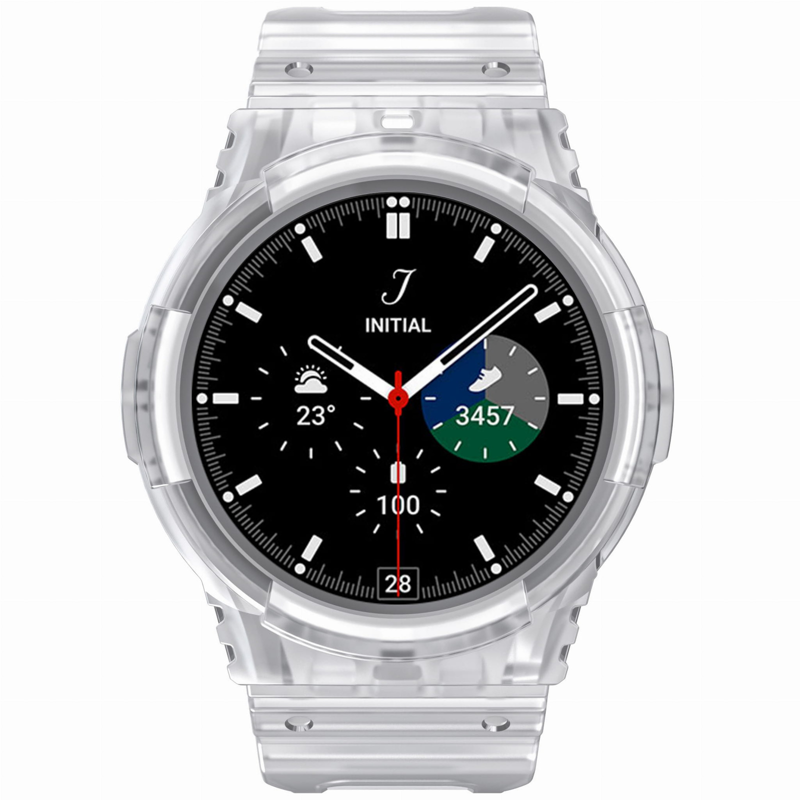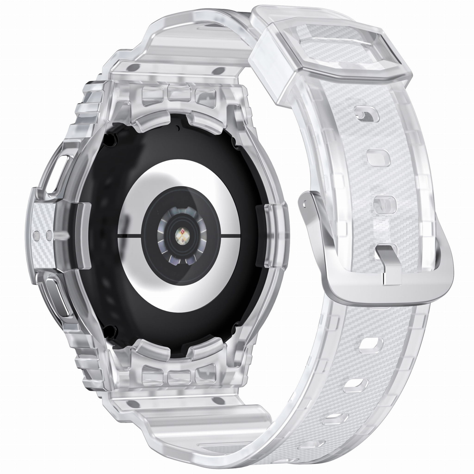 Etui z paskiem Bizon Strap + Case Watch Action do Samsung Galaxy Watch 4 / 5 44 mm, przezroczyste