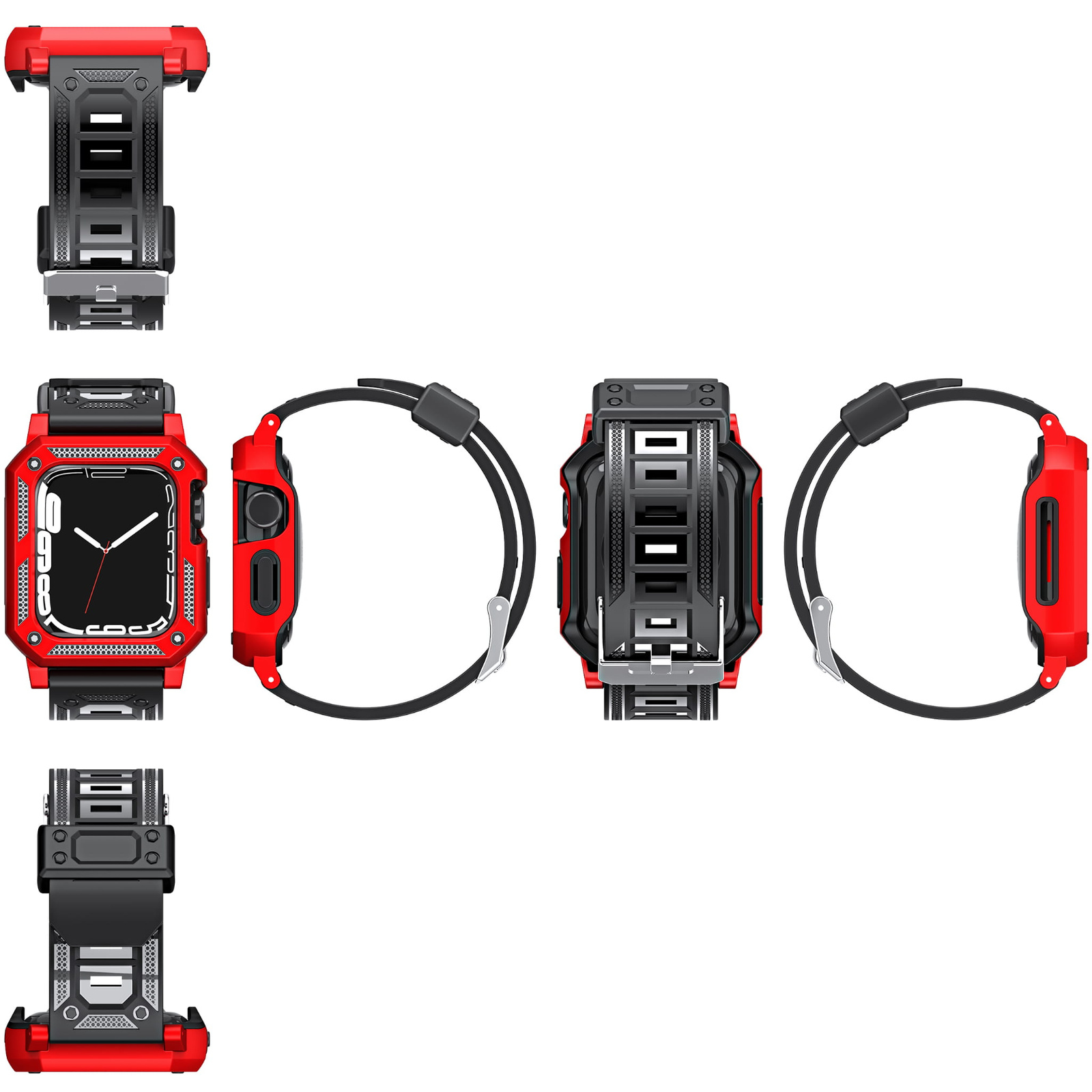 - Pancerne etui z paskiem Bizon Strap + Case Watch Armor do Apple Watch 44 / 45mm, czerwone