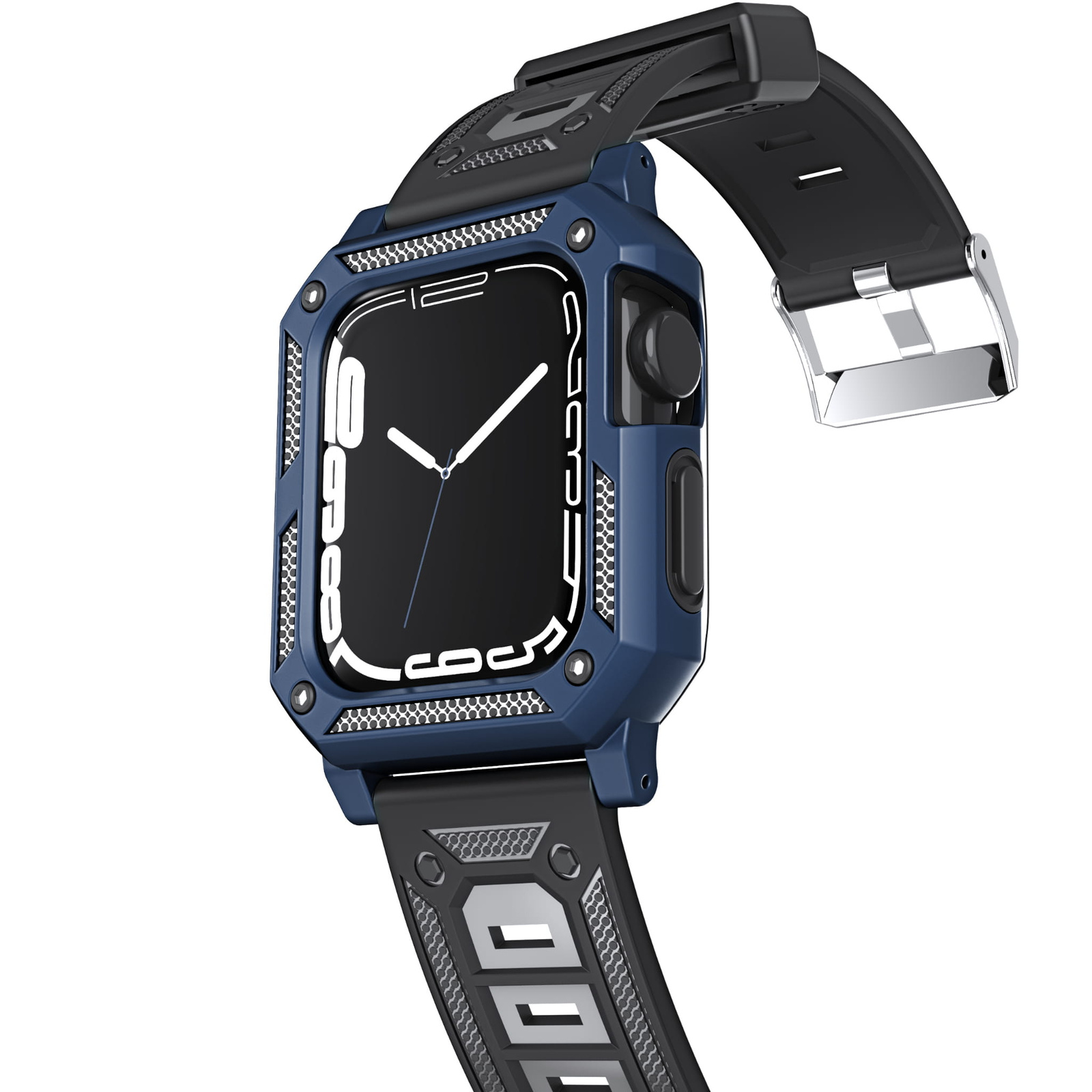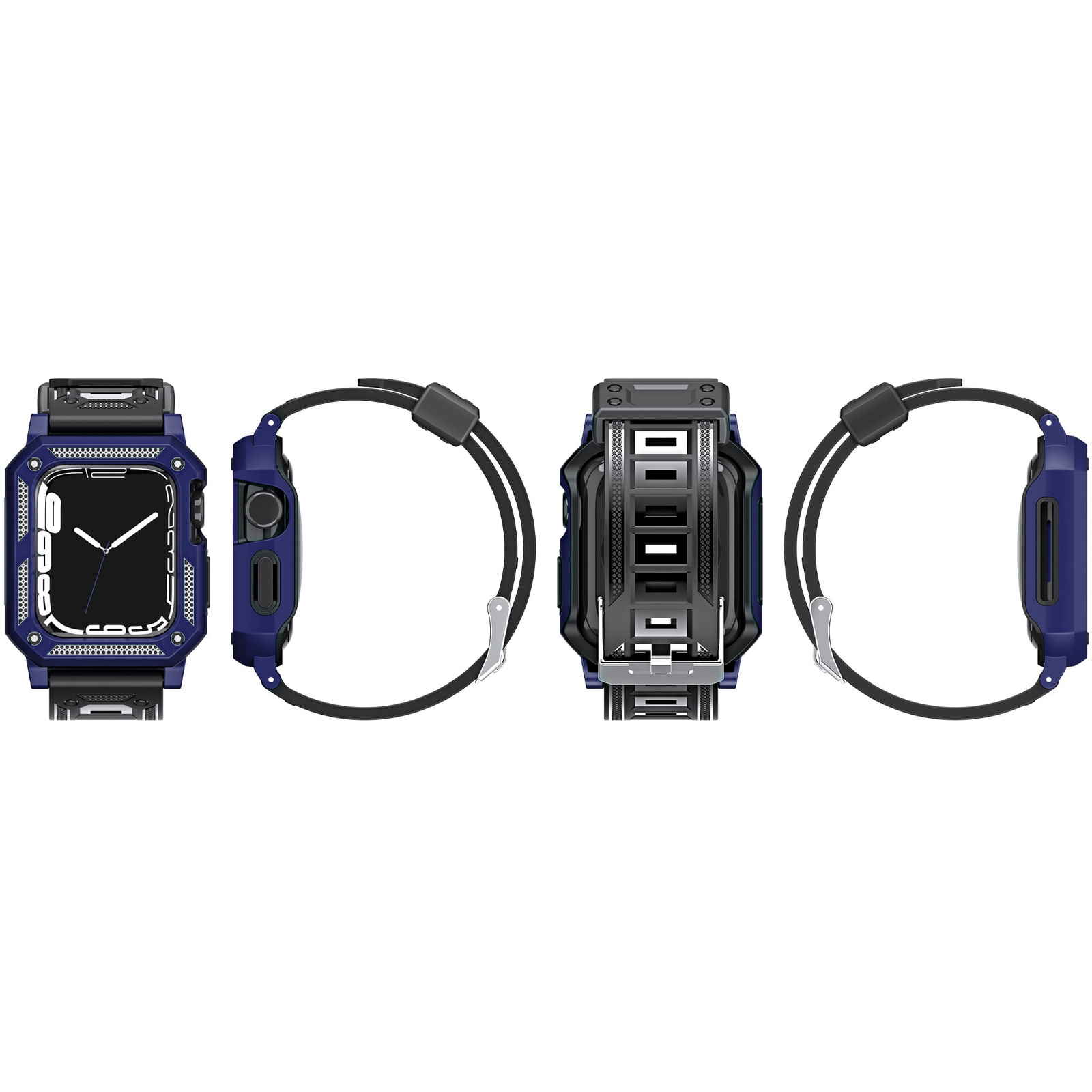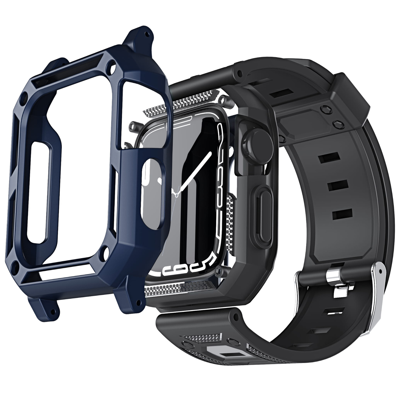 - Pancerne etui z paskiem Bizon Strap + Case Watch Armor do Apple Watch 44 / 45mm, granatowe