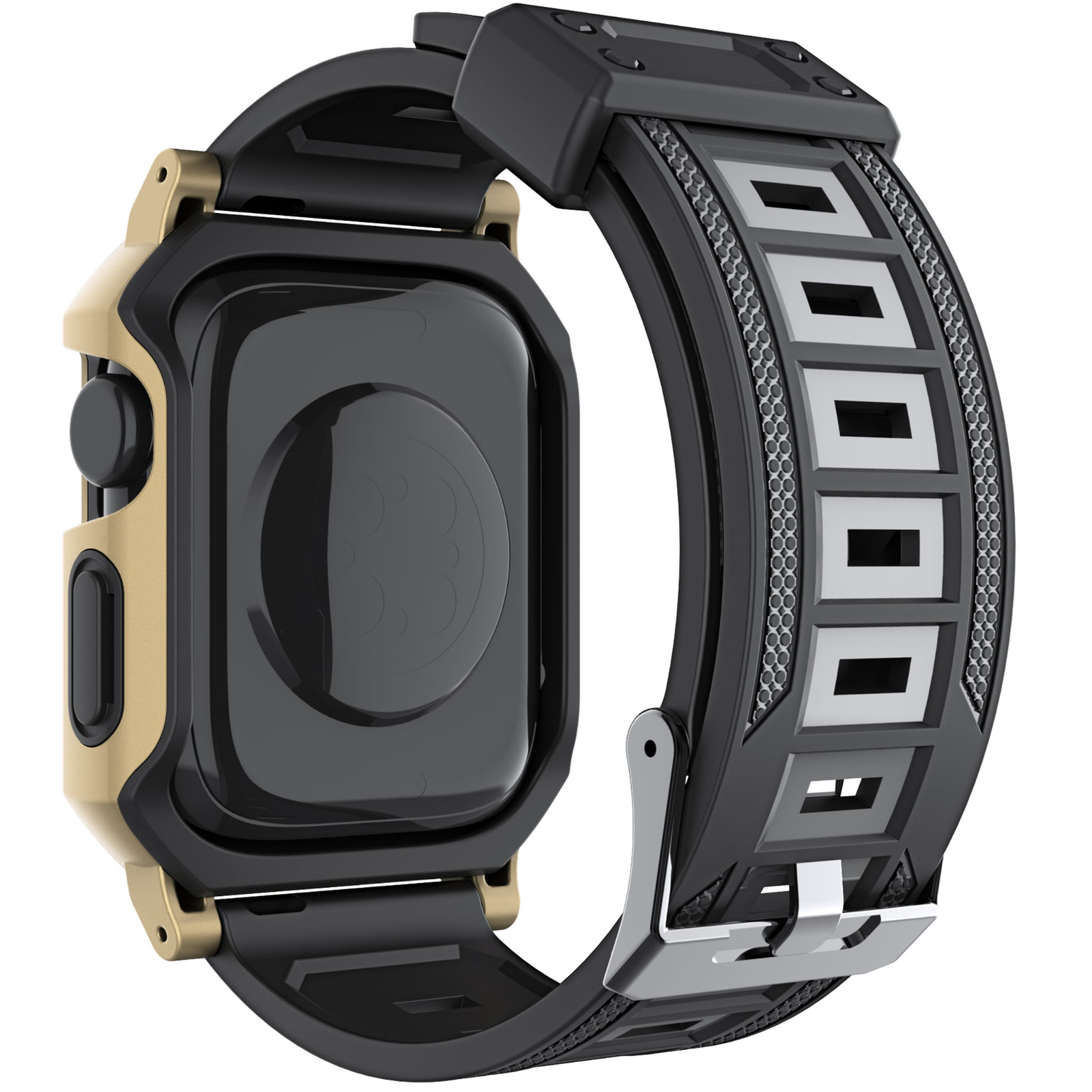 • Pancerne etui z paskiem Bizon Strap + Case Watch Armor do Apple Watch 44 / 45mm, złote