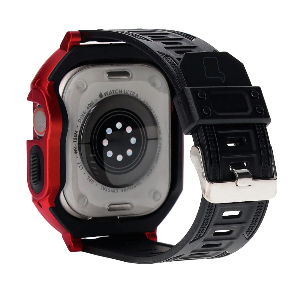- Pancerne etui z paskiem Bizon Strap + Case Watch Armor do Apple Watch Ultra 49mm, czerwone