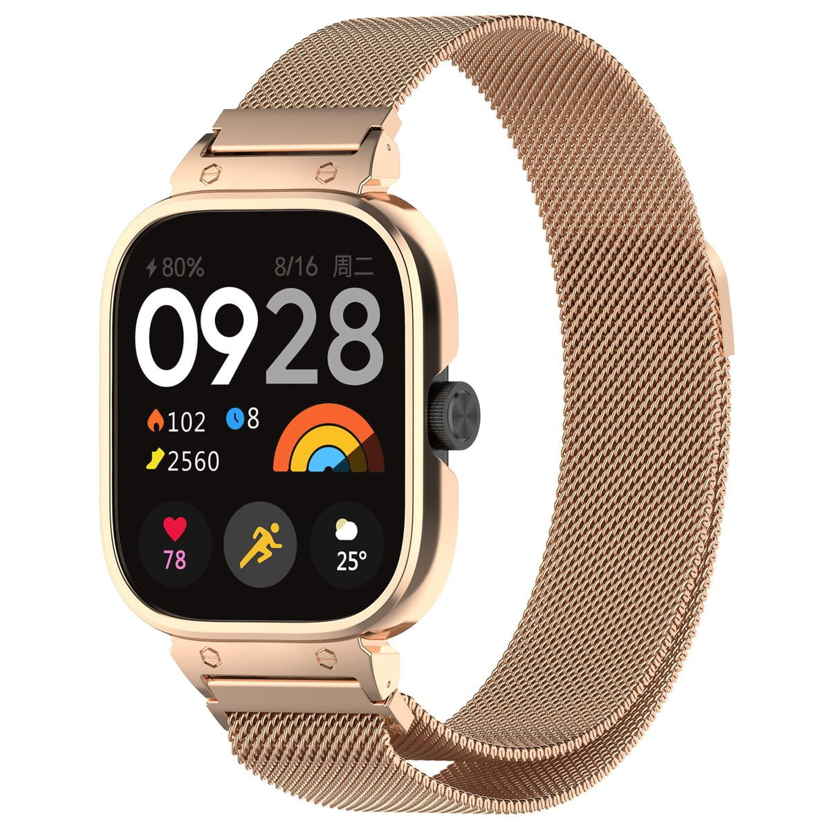 - Etui z paskiem Bizon Strap + Case Watch Chain do Xiaomi Redmi Watch 4, różowozłote