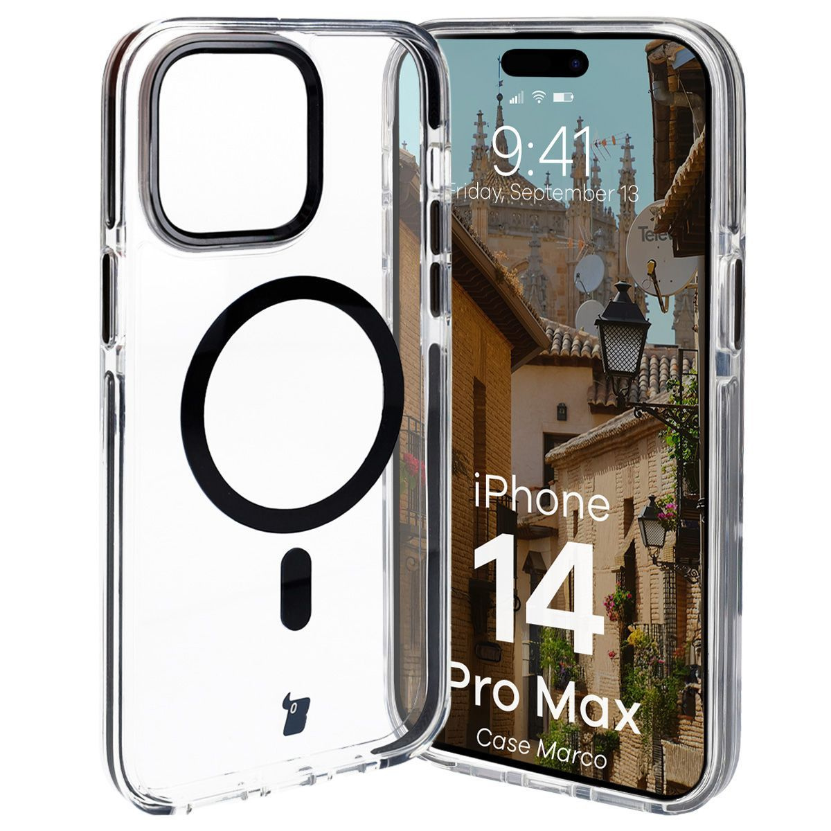 Etui z pierścieniem magnetycznym Bizon Case Marco do iPhone 14 Pro Max, przezroczyste z czarną ramką
