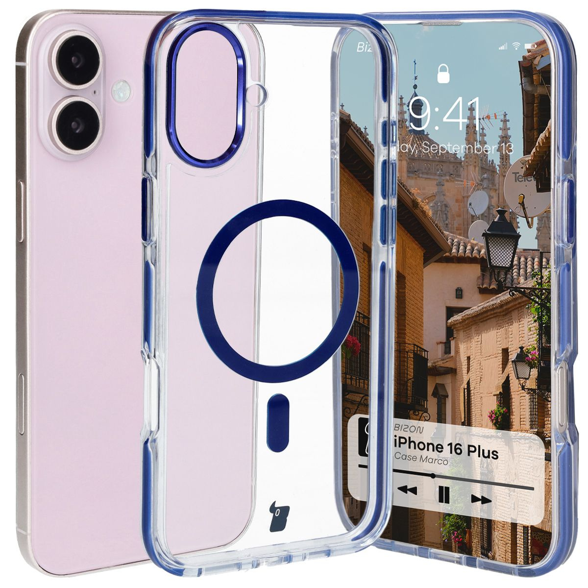 - Matowe etui, obudowa z pierścieniem magnetycznym, mocny case - nieważne, jak na to mówisz, ważne, że udało Ci się znaleźć przezroczyste etui z niebieską ramką Bizon Case Marco do Apple iPhone 16 Plus!
