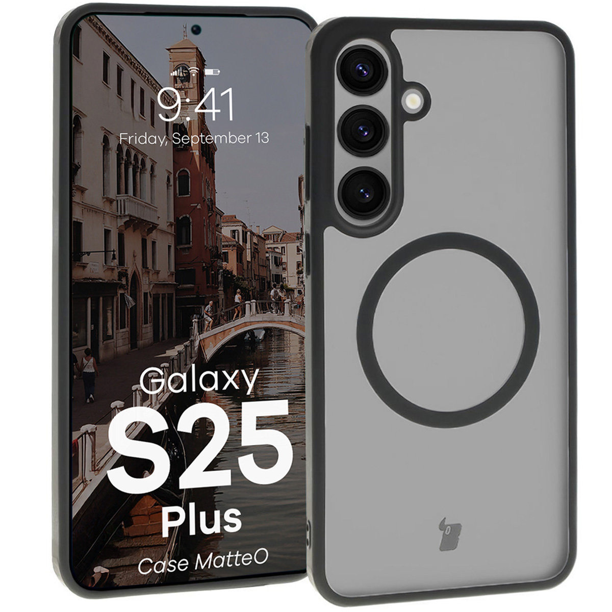 • Matowe etui, obudowa z pierścieniem magnetycznym - nieważne, jak na to mówisz, ważne, że udało Ci się znaleźć półprzezroczyste etui z czarną ramką Bizon Case MatteO do Samsung Galaxy S25 Plus!