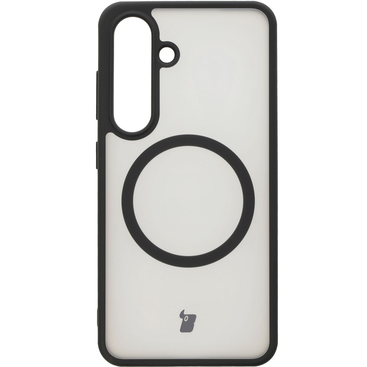 Etui z pierścieniem magnetycznym Bizon Case MatteO do Galaxy S25, półprzezroczyste z czarną ramką