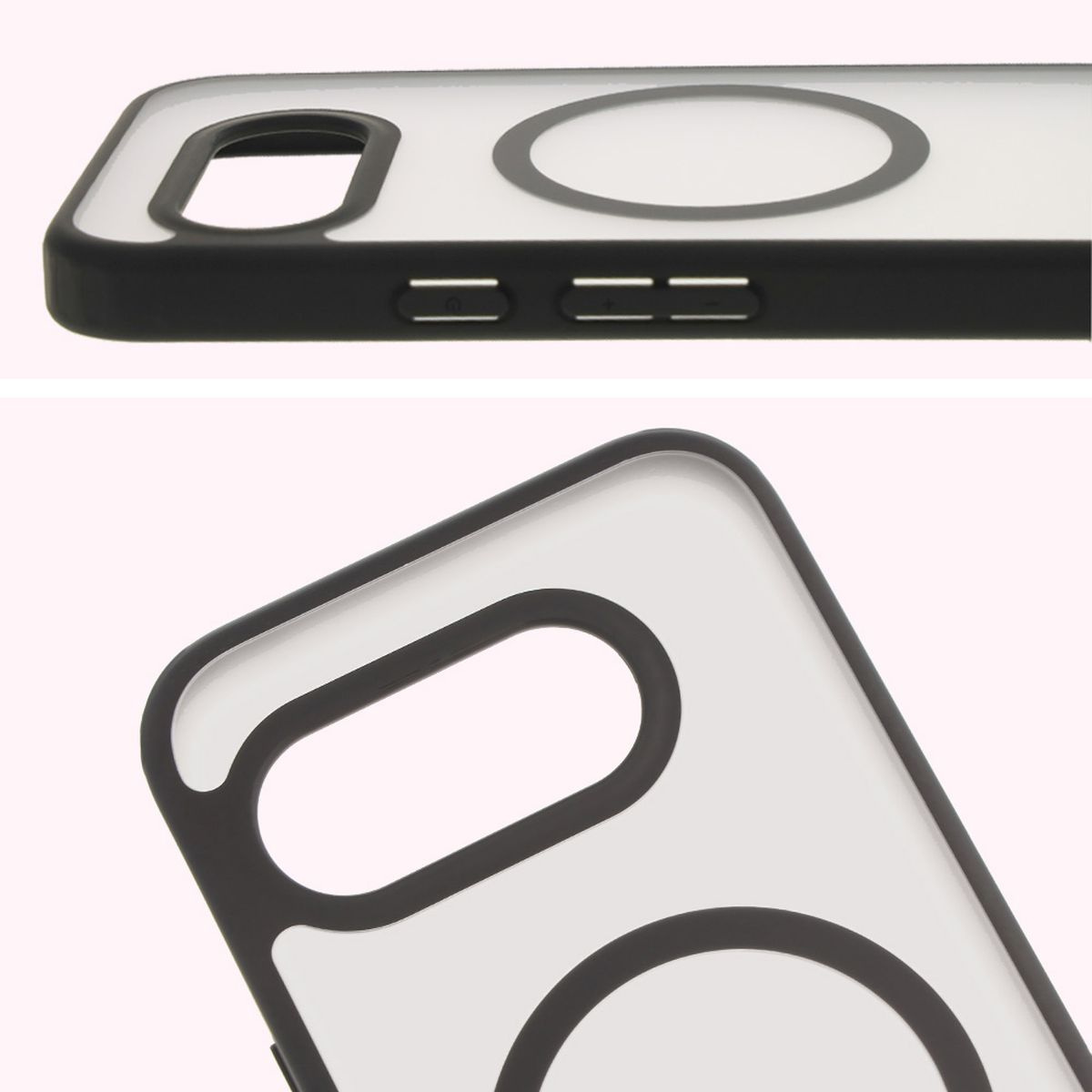 - Matowe etui, obudowa z pierścieniem magnetycznym - nieważne, jak na to mówisz, ważne, że udało Ci się znaleźć półprzezroczyste etui z czarną ramką Bizon Case MatteO do Google Pixel 9a!