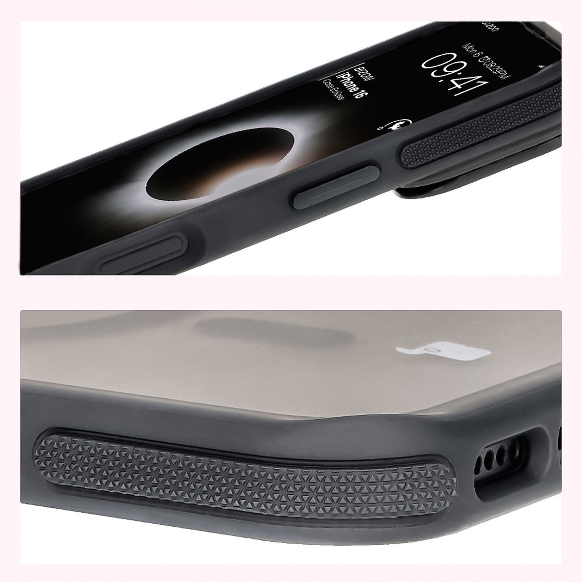 - Matowe etui, obudowa z pierścieniem magnetycznym, case z podstawką - nieważne, jak na to mówisz, ważne, że udało Ci się znaleźć przydymione etui z czarną ramką Bizon Case Eclipse do Apple iPhone 16!
