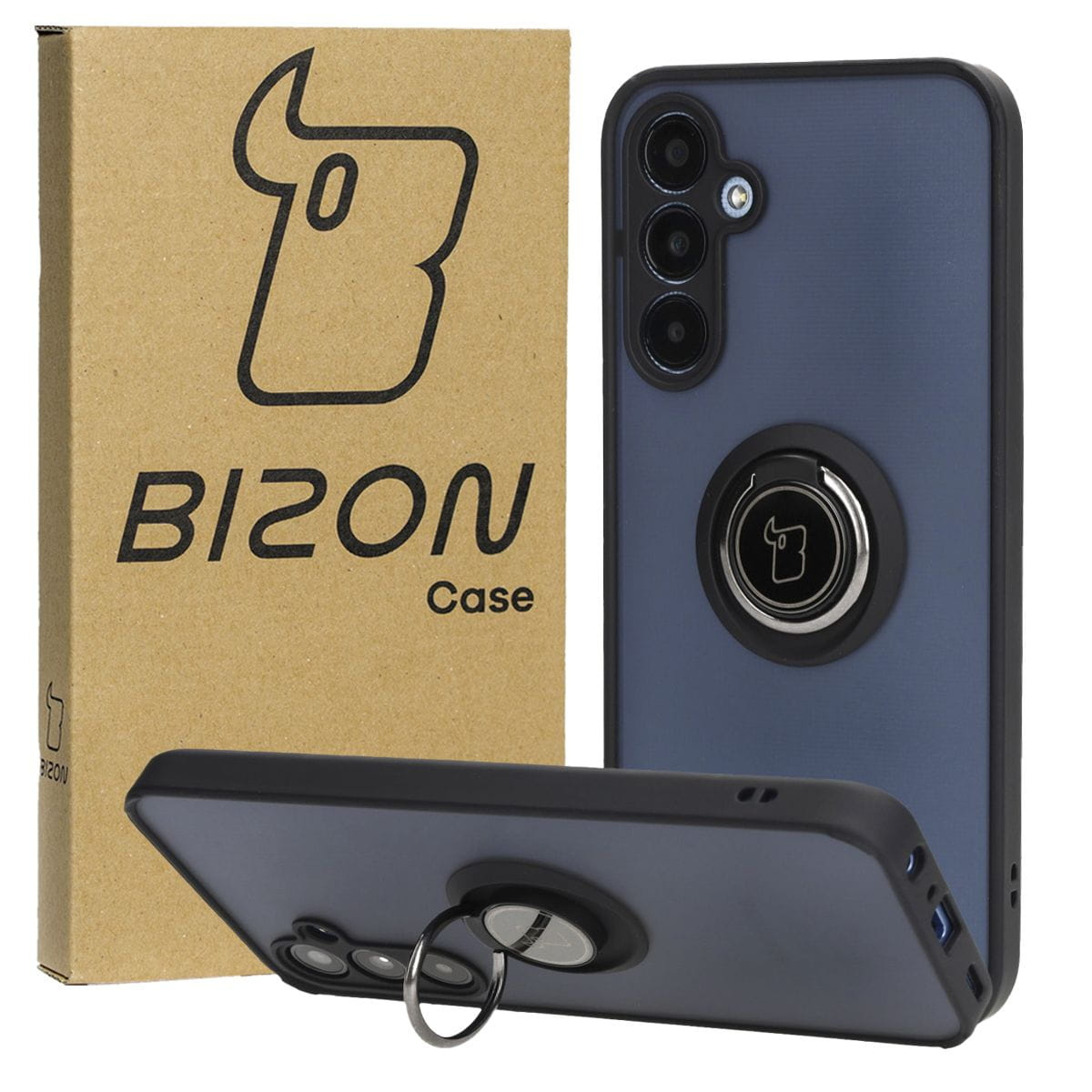 Etui z uchwytem na palec Bizon Case Hybrid Ring do Galaxy A25 5G, przydymione z czarną ramką