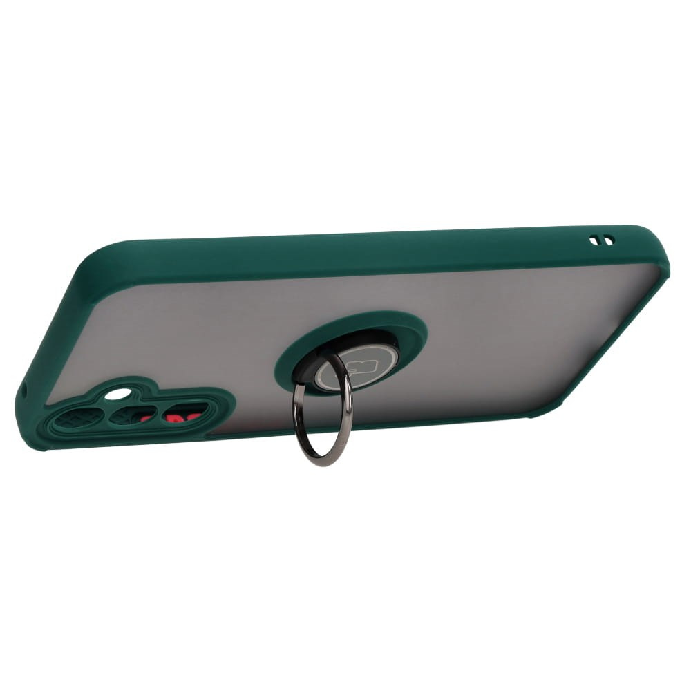 Etui z uchwytem na palec Bizon Case Hybrid Ring do Galaxy A34 5G, przydymione z ciemnozieloną ramką