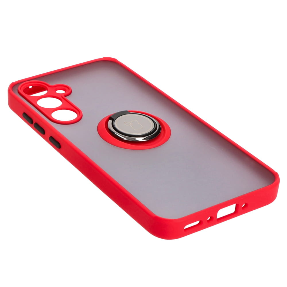 Etui z uchwytem na palec Bizon Case Hybrid Ring do Galaxy A35 5G, przydymione z czerwoną ramką