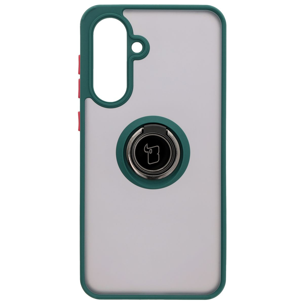 Etui z uchwytem na palec Bizon Case Hybrid Ring do Galaxy A36 5G / A56 5G, przydymione z ciemnozieloną ramką