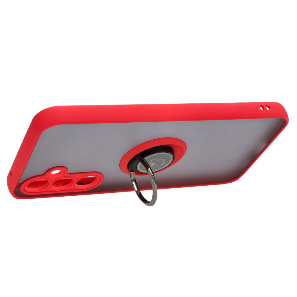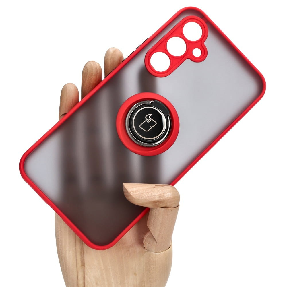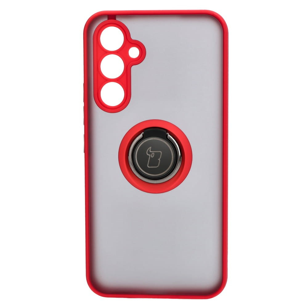 Etui z uchwytem na palec Bizon Case Hybrid Ring do Galaxy A54 5G, przydymione z czerwoną ramką