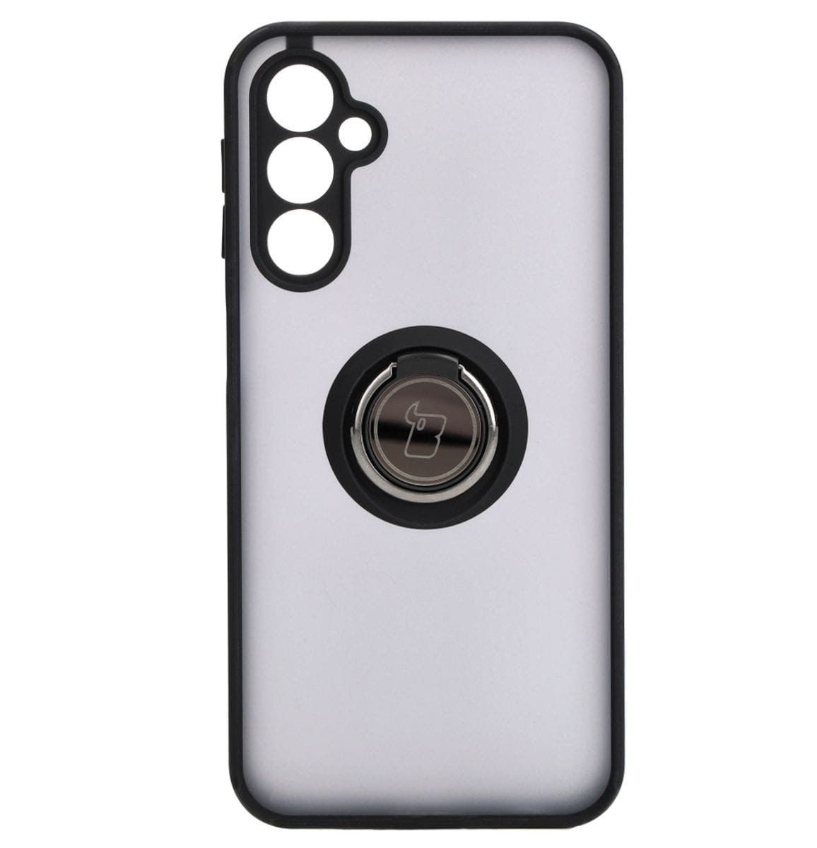 Etui z uchwytem na palec Bizon Case Hybrid Ring do Galaxy M34 5G, przydymione z czarną ramką