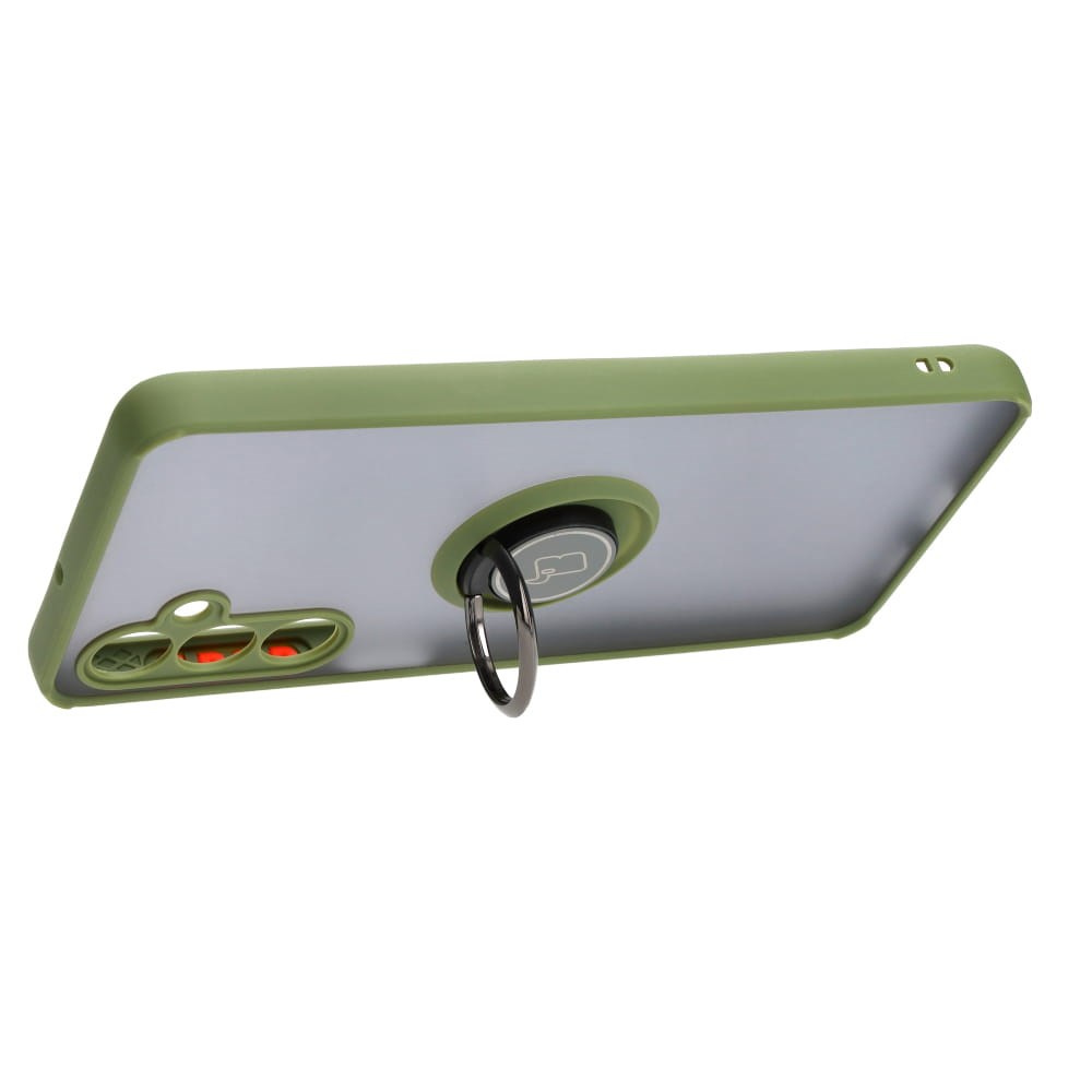 Etui z uchwytem na palec Bizon Case Hybrid Ring do Galaxy M54 5G, przydymione z zieloną ramką