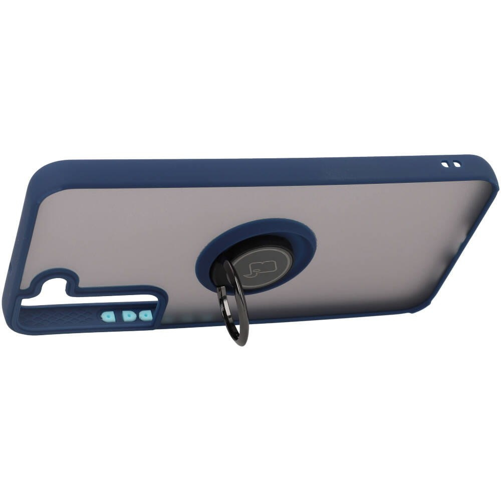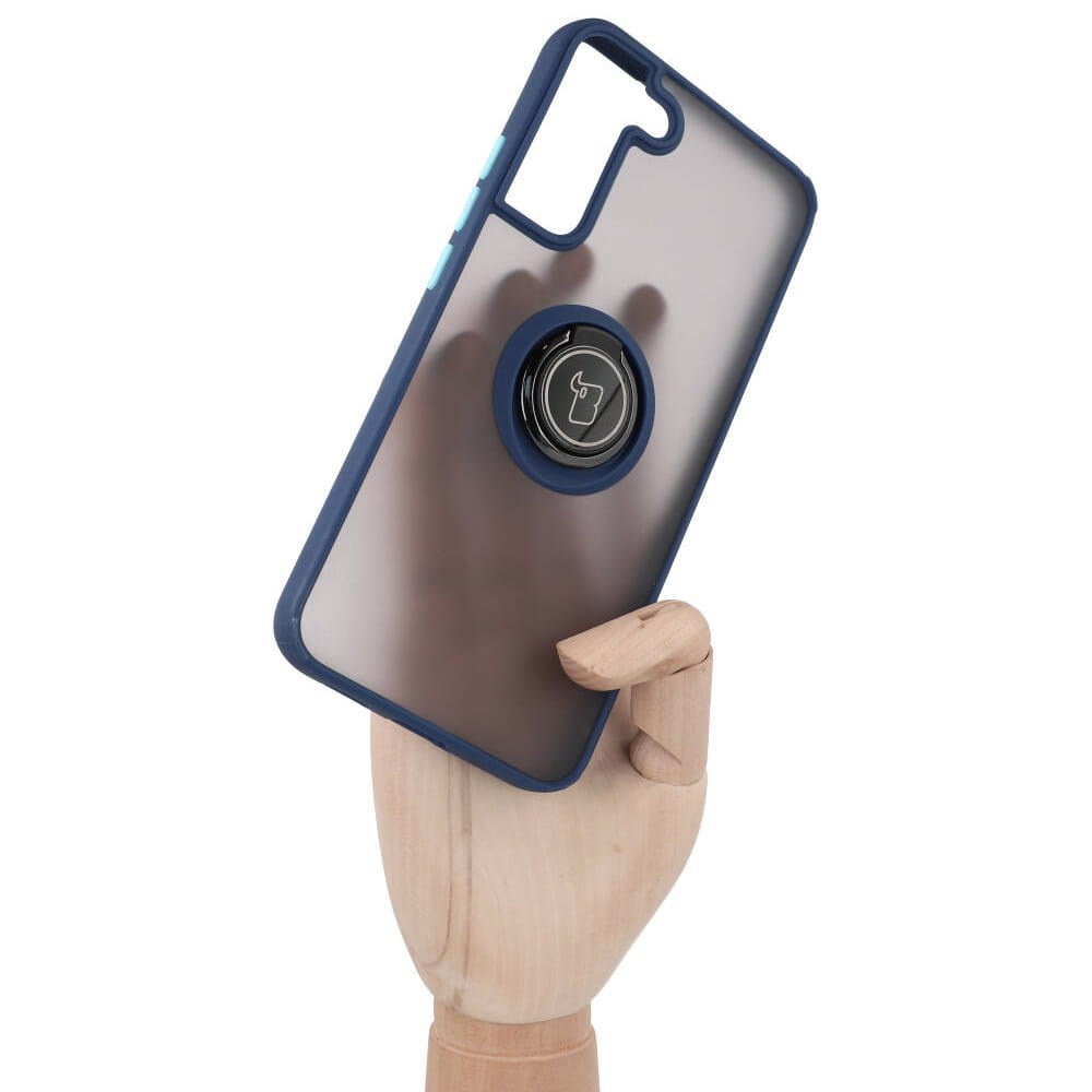 Etui z uchwytem na palec Bizon Case Hybrid Ring do Galaxy S22 Plus, przydymione z granatową ramką