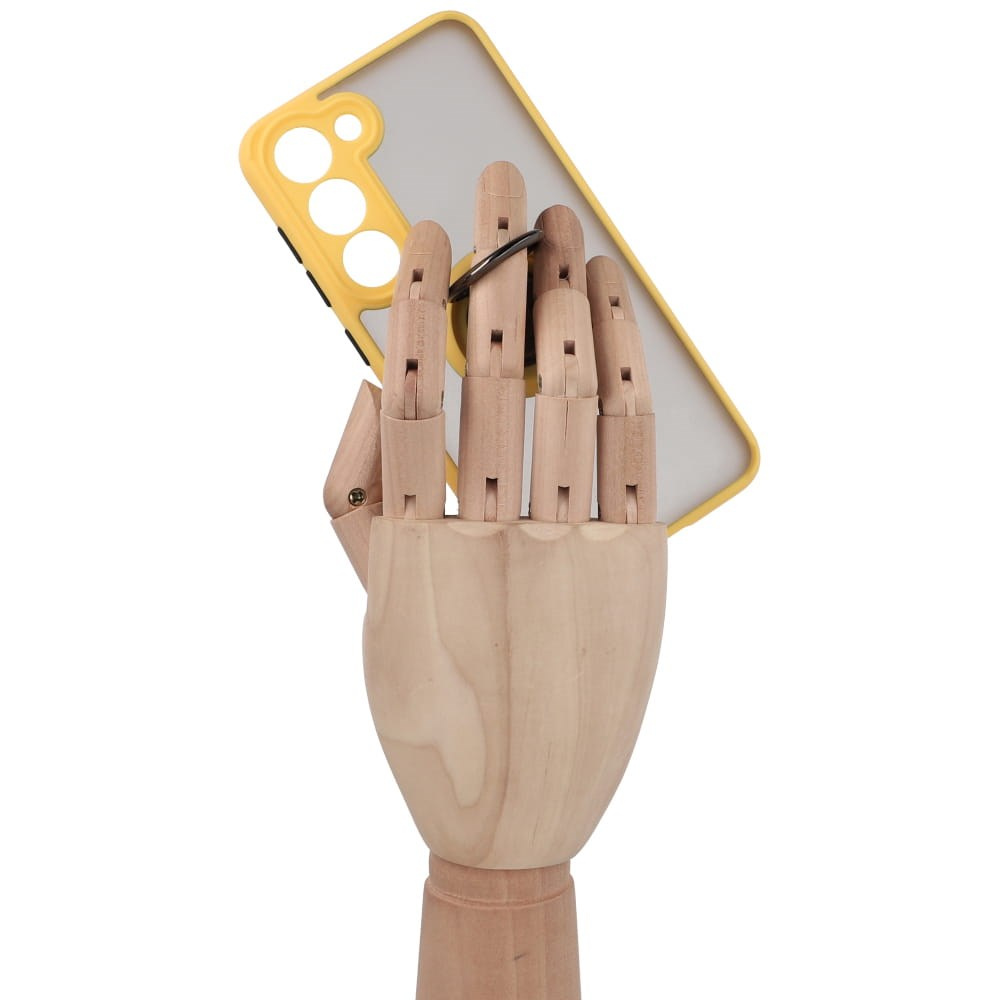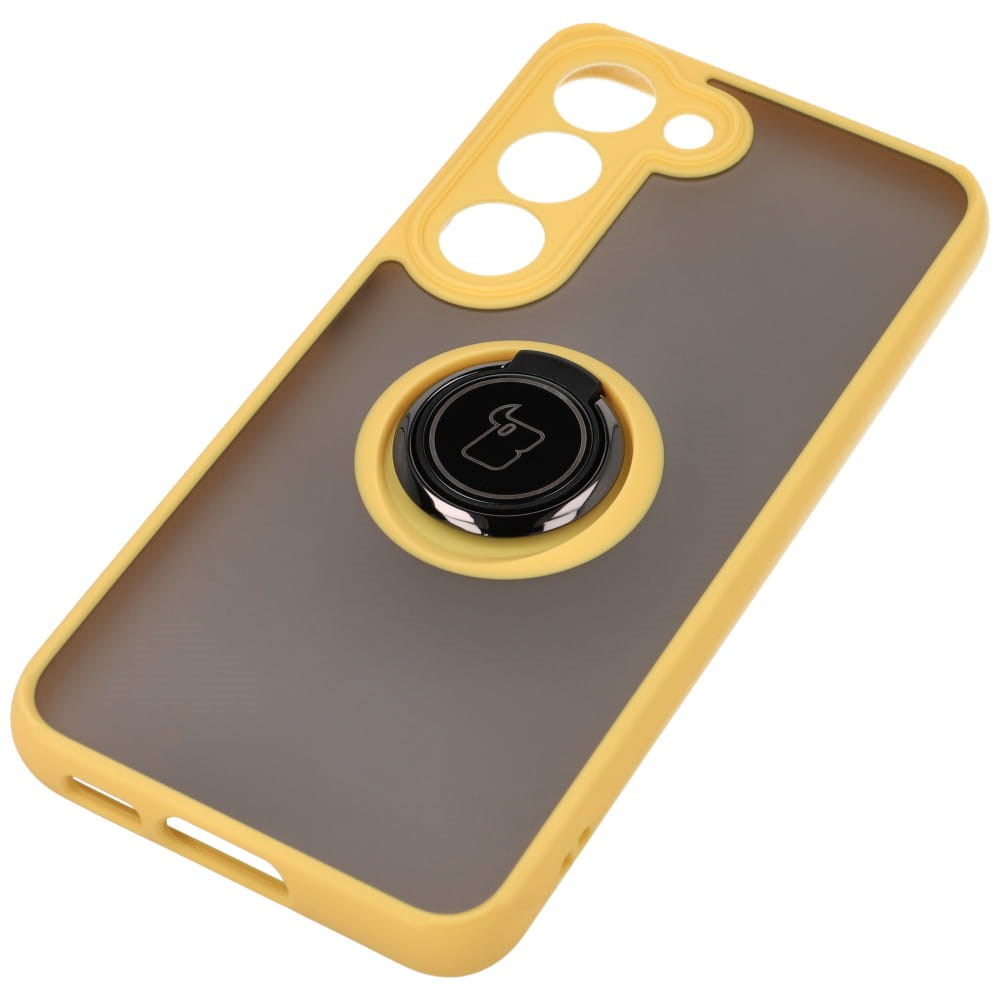 Etui z uchwytem na palec Bizon Case Hybrid Ring do Galaxy S23, przydymione z żółtą ramką