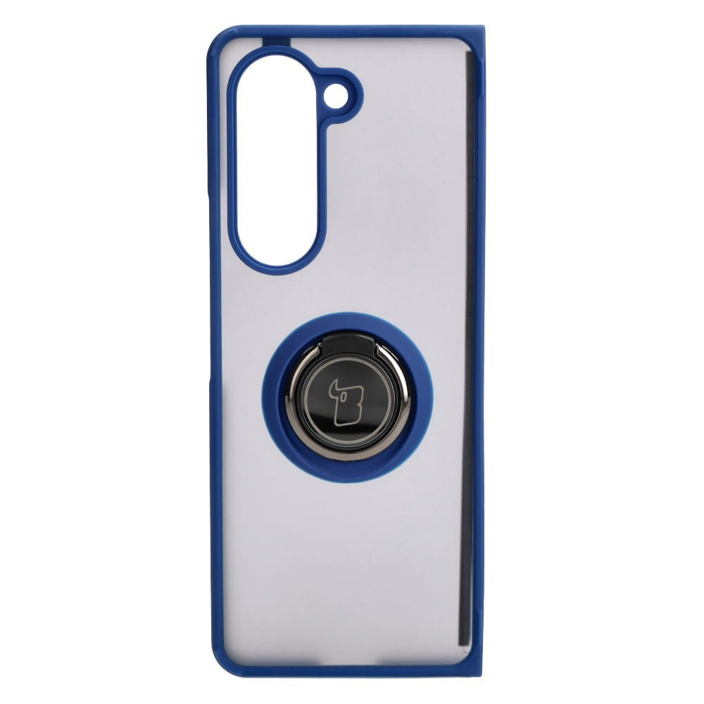 Etui z uchwytem na palec Bizon Case Hybrid Ring do Galaxy Z Fold5, przydymione z granatową ramką