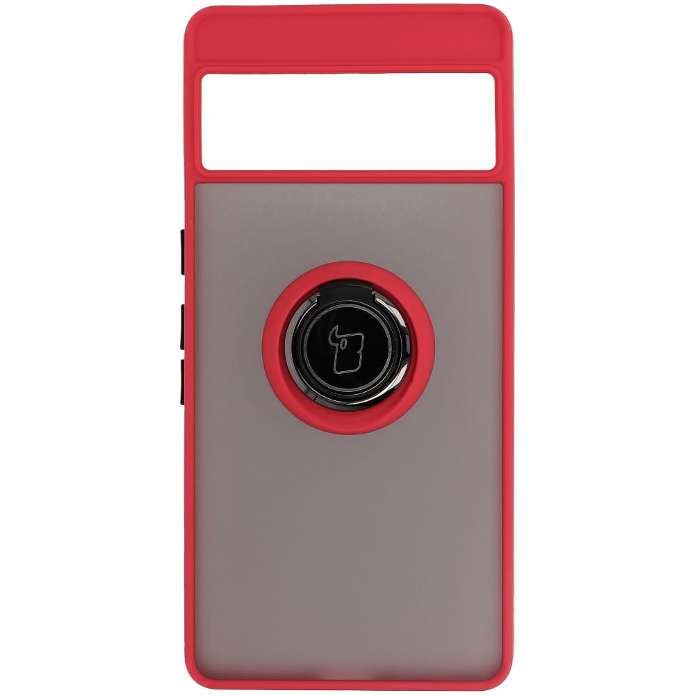 Etui z uchwytem na palec Bizon Case Hybrid Ring do Google Pixel 7 Pro, przydymione z czerwoną ramką