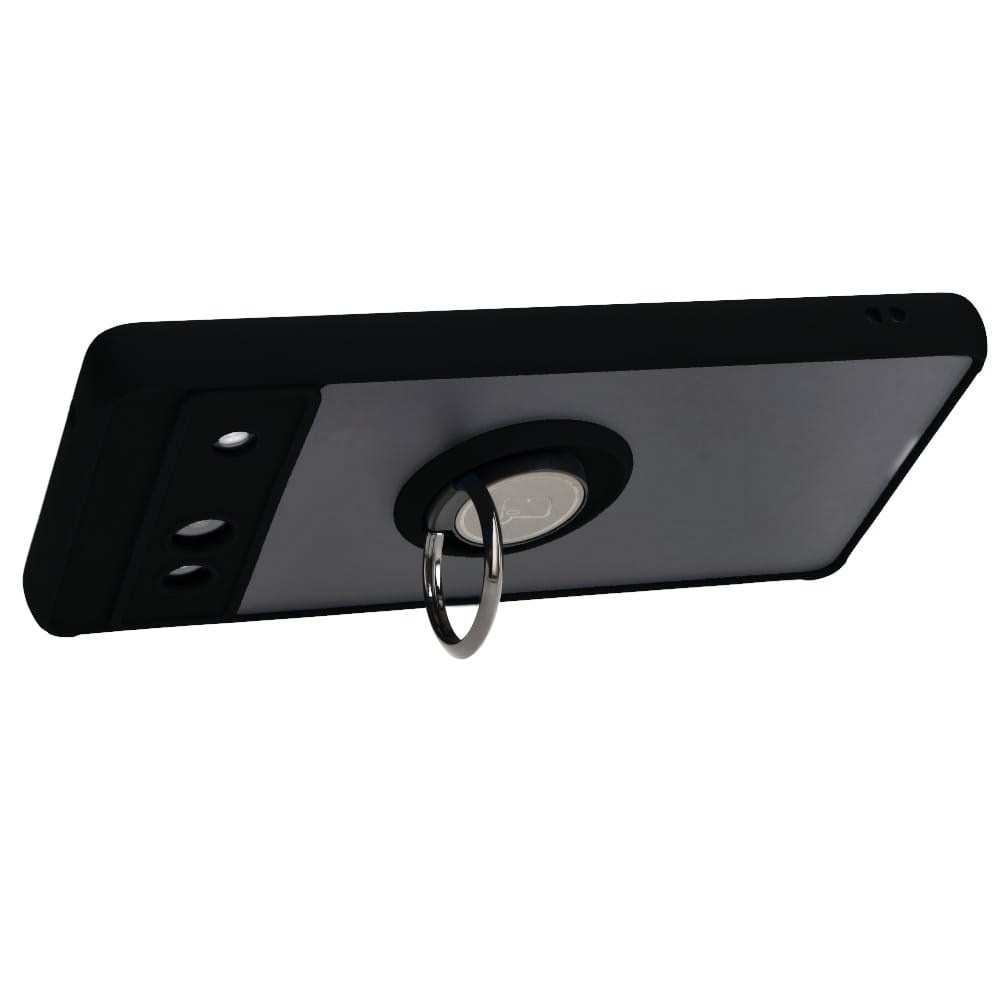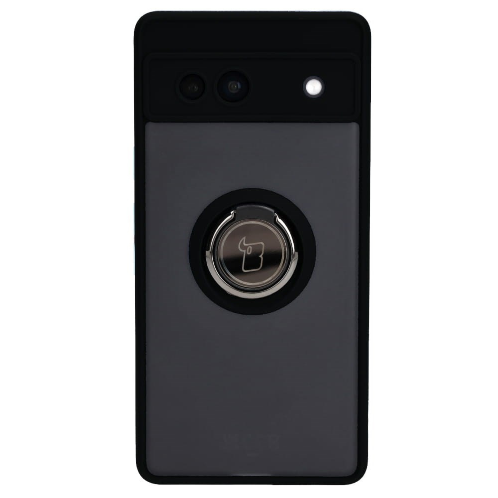 Etui z uchwytem na palec Bizon Case Hybrid Ring do Google Pixel 7A, przydymione z czarną ramką
