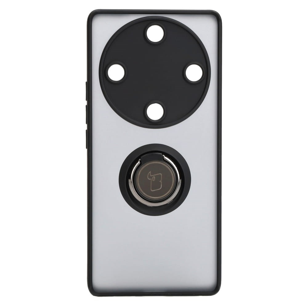 Etui z uchwytem na palec Bizon Case Hybrid Ring do Honor Magic5 Lite, przydymione z czarną ramką