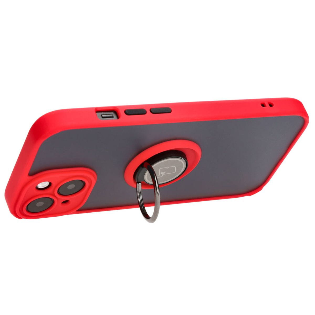 Etui z uchwytem na palec Bizon Case Hybrid Ring do iPhone 15, przydymione z czerwoną ramką